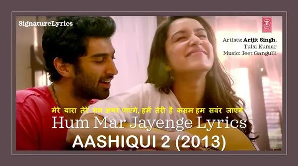 Hum Mar Jayenge Song sang by Arijit Singh, Tulsi Kumar is from Superhit Romantic Musical MovieAashiqui 2 (2013) starring Aditya Roy Kapoor and Shraddha Kapoor. The music is given by Jeet Gangulli and the lyrics by Irshad Kamil.