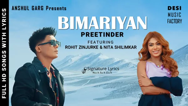 Bimariyan Lyrics sung by Preetinder is a Sweet Punjabi Love Song. The song lyrics are written by Vicky Sandhu while the music is produced by Rajat Nagpal. In this post, you will find the lyrics and the music video of Bimariyan Song featuring Rohit Zinjurke & Nita Shilimkar.