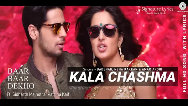 Kala Chashma Lyrics - Baar Baar Dekho | Amar Arshi, Badshah & Neha Kakkar | Sidharth Malhotra, Katrina Kaif
