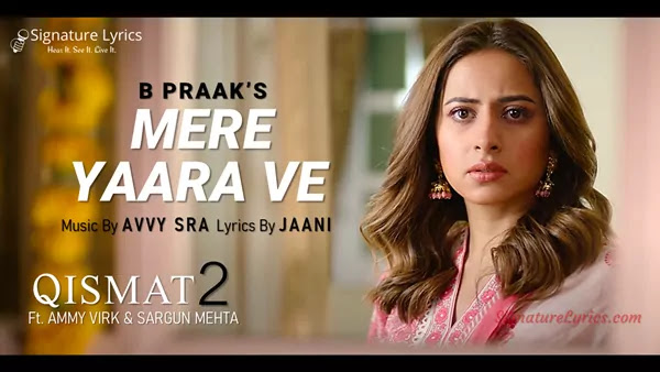 Mere Yaara Ve Lyrics from Qismat 2 is the Latest Punjabi Romantic Song sung by B Praak. Mere Yaara Ve song lyrics are written by Jaani while the music is produced by Avvy Sra, B Praak. In this post, you will find the lyrics and the music video of Mere Yaara Ve Song featuring Ammy Virk and Sargun Mehta.